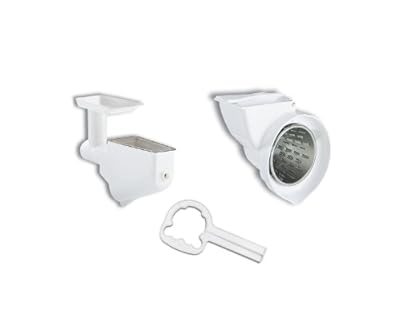 Most parts are dishwasher-safe. . Can be used with any KitchenAid stand mixer . Two slicing and two shredding cones included . Grinder has fine and coarse grinding blades . Includes food grinder, slicer and shredder, and fruit and vegetable strainer .| Name | Detail |